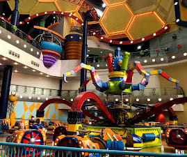 - الطعام والمشروبات داخل الملاهي – تتوفر مطاعم وكافيهات داخل المركز التجاري.